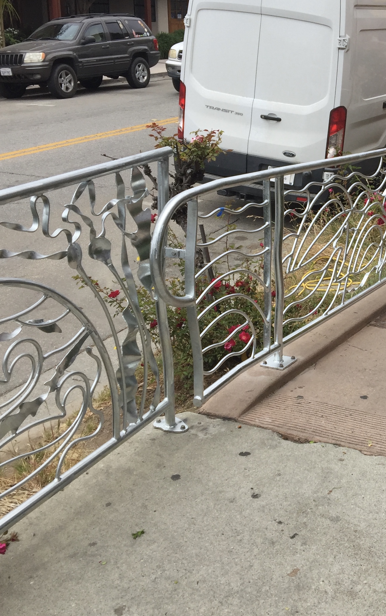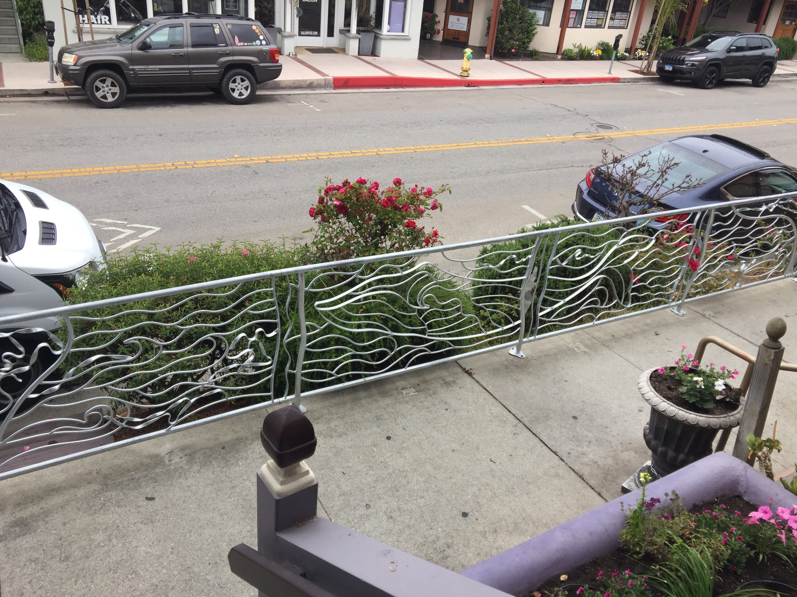Monterey Bay themed guardrail providing safe travel along a very busy street while echoing the sea life found there