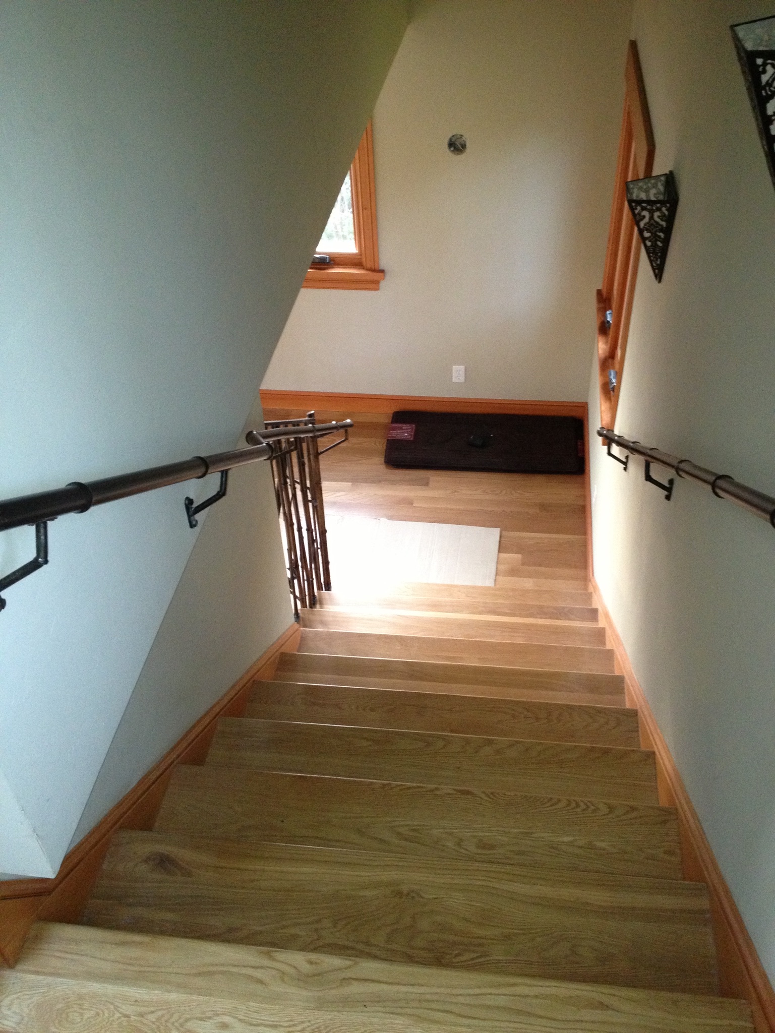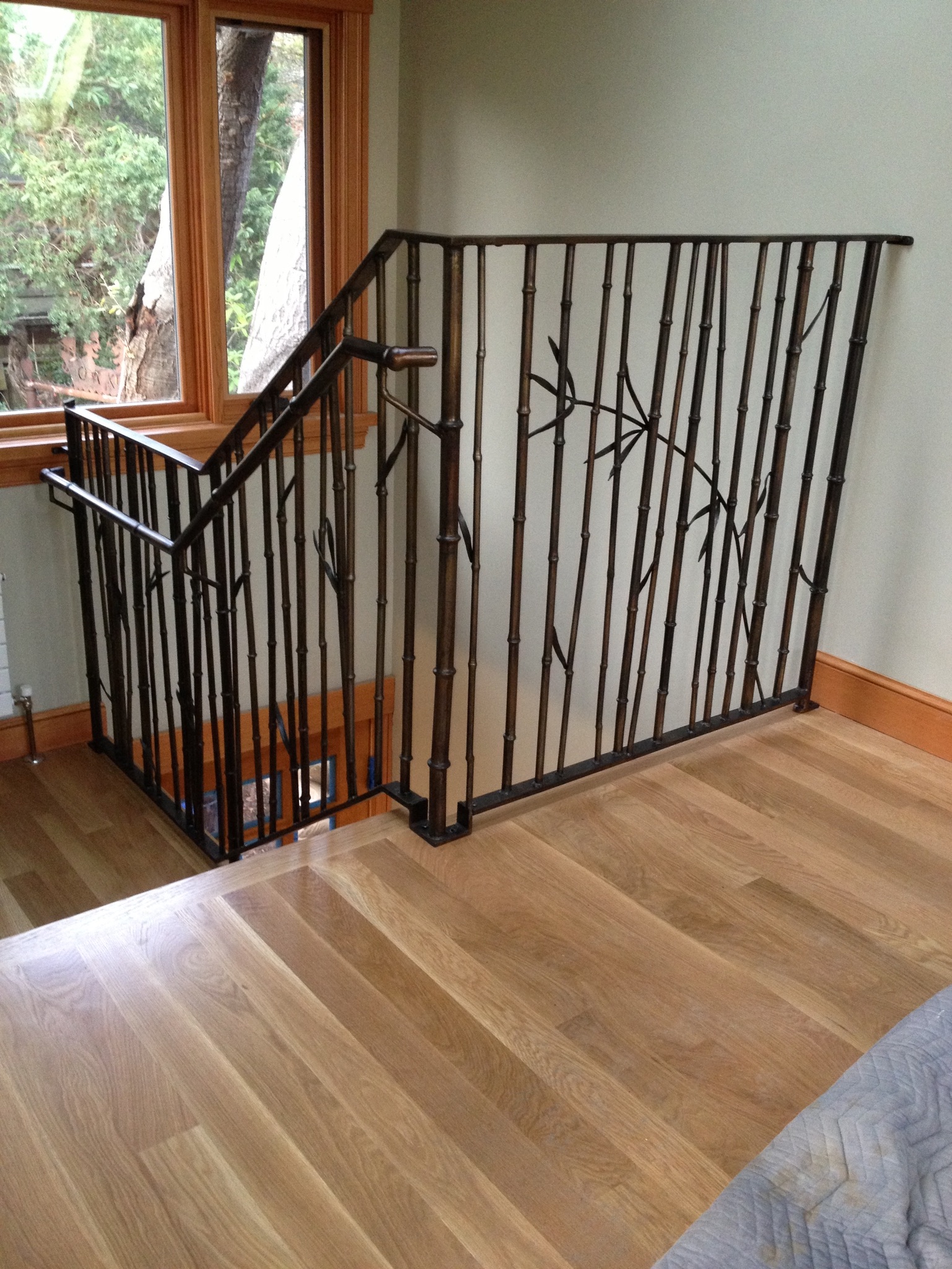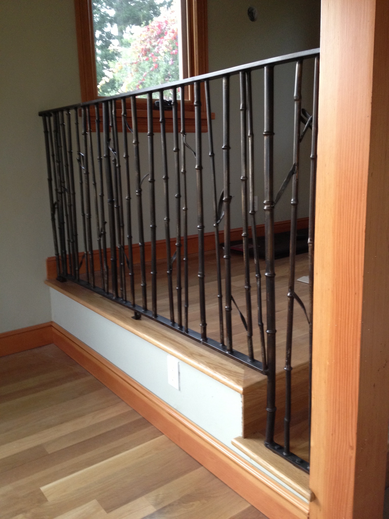 When meeting code requirements for guard and handrails but conventional design is not what you had in mind. These bamboo inspired, steel guard and handrails added to the interior architectural design.